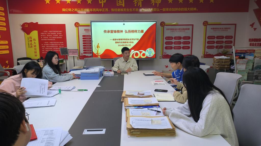 2024年3月27日,mk体育团总支开展“传承雷锋精神,弘扬榜样力量”雷锋月主题教育实践分享会,会议由团总支书记文阳兴家主持,全体团学干部参加。旅游与管理mk体育党总支副书记周嵘参加会议。
