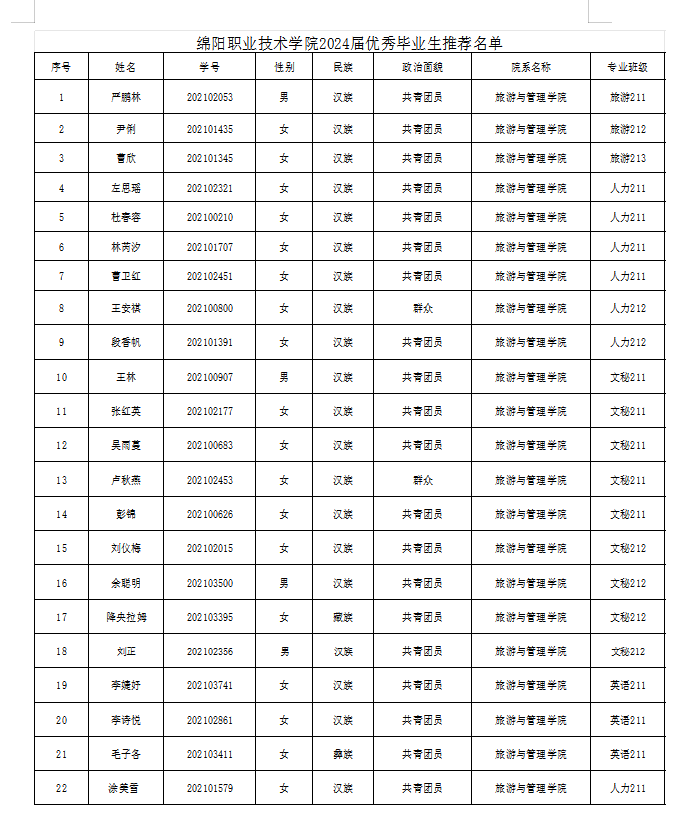 为了做好 2024届优秀毕业生评选工作。公司根据mksports关于评选 2024届优秀毕业生的通知(绵职院办发〔2023〕27 号)文件精神,经本人自愿申请、班级评议小组公开评选、公司评审小组公开评审,现对2024届优秀毕业生评选结果进行公示,具体名单见附件。公示时间为:2023 年11月3日至 2023 年11月5日。如有异议请联系mk体育员工办公室,电话 0816-2203895。