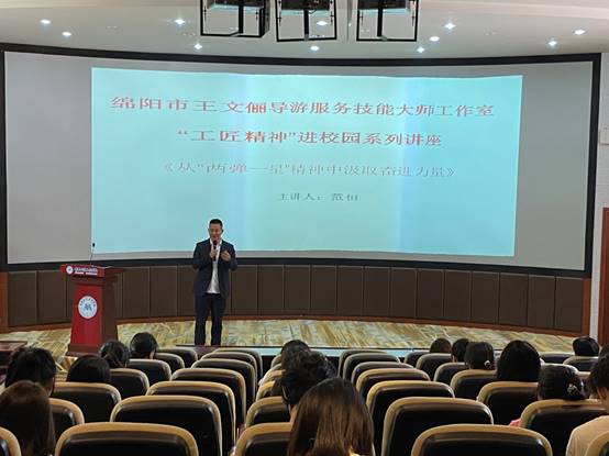 工匠精神彰显中国传统文化精髓,是新时代中国特色社会主义文化建设不可或缺的精神食粮,作为公司社科活动月系列活动之一,工匠精神进校园活动顺利开展。6月3日,绵阳市王文俪导游服务技能大师工作室特邀绵阳“两弹一星”精神宣讲团成员范恒老师走进mksports大讲堂,为公司师生做了题为《从“两弹一星”精神中汲取奋进力量》的专题讲座。