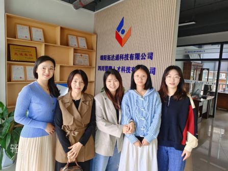 在四川九华光子通信技术有限公司、四川猎聘人才科技有限公司等,谢婷婷等分别与实习同学及其部门领导交流沟通,了解员工在实习过程中的工作安排、通勤情况、生活状况以及实习过程中遇到的困难和问题,收集实习单位对专业人才培养的意见和建议。员工们认为在实习过程中得到不少锻炼机会,能够将专业知识与工作实践联系起来。同时,实习单位的领导和工作人员对同学们也给予了很高的评价,充分认可公司员工爱岗敬业的工作态度以及踏实认真的工作作风,希望公司能够为公司继续输送更多的人才。