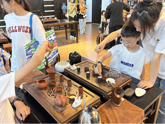 本次研学活动课程由mk体育旅游管理专业教研室精心设计,联合智能制造公司、王文俪导游服务技能大师工作室、mksports嘉途旅行社工作坊共同组织,采取实践体验、参观讨论、户外观摩等多样形式,带领孩子们了解了各种类型的无人机,并亲手制作了“无动力滑翔机”,观看了各种无人机的飞行表演;在茶艺大师工作室开展了茶艺活动,带领小朋友们走进中国茶文化,亲自体验茶道技艺,在阵阵茶香中感悟中国传统文化,感受流转千年的文化魅力。