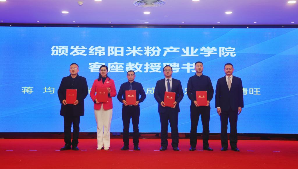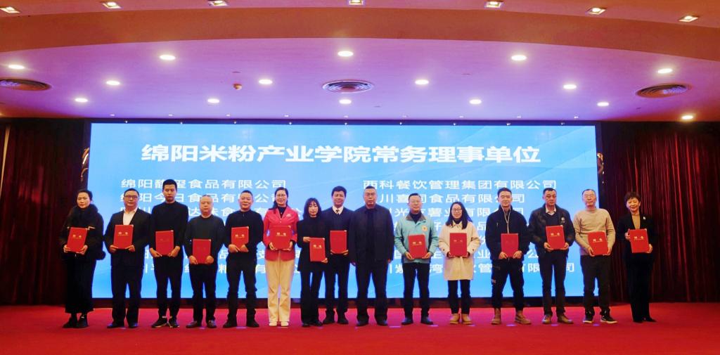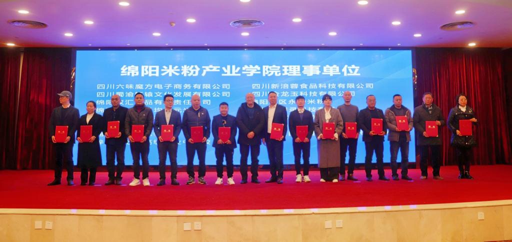 会议审议并通过了《绵阳米粉产业公司理事会章程》,审议并通过了理事长、常务理事、理事单位建议推荐名单。与会嘉宾为相关单位颁发聘书。会议还进行了政、校、企、行四方产教融合项目签约仪式。