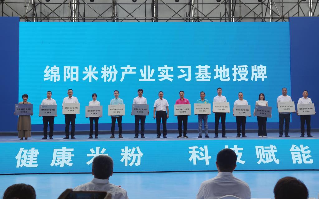 会上进行了“绵阳米粉产业实习基地”授牌仪式。张明为西科餐饮管理集团有限公司、台沃科技集团股份有限公司等13家企业授牌。